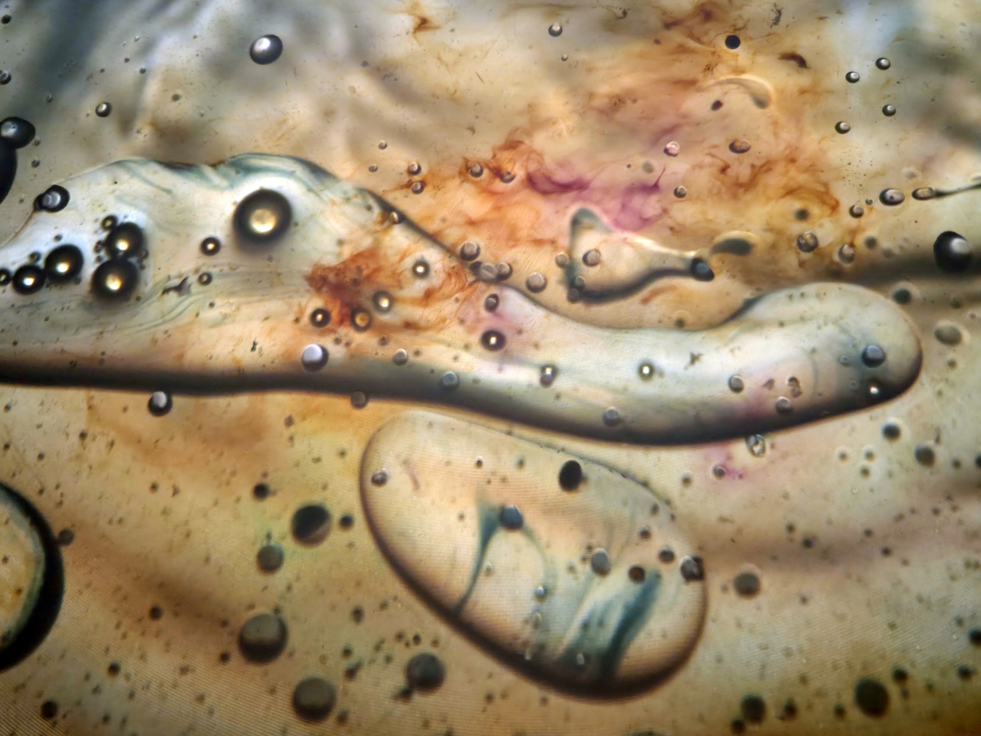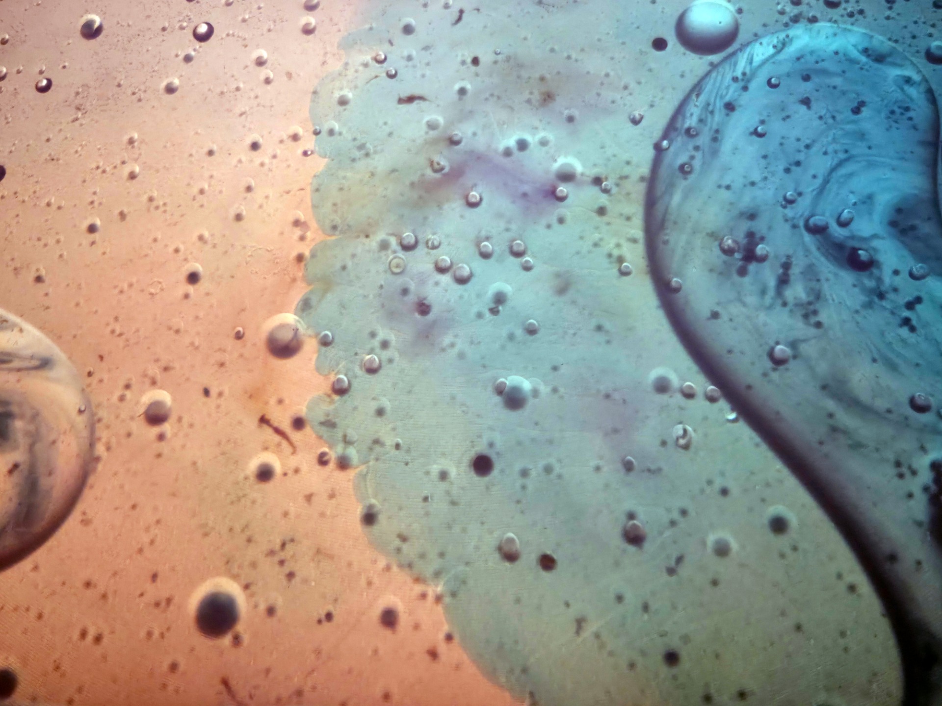 I am discovering the behaviour of various chemical liquids and their reactions, using the analogue overhead projector. The liquid shapes may resemble specific human metaphors. These images are chosen and adjusted from stills captured by my colleague musician Ondřej Tichý.